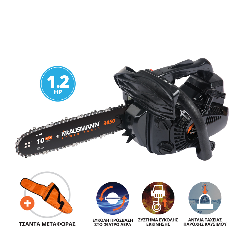 Εύχρηστο και μικρό σε μέγεθος αλυσοπρίονο βενζίνης 25cc, με σύστημα εύκολης εκκίνησης, αντλία παροχής καυσίμου και εύκολη πρόσβαση στο φίλτρο. Κατάλληλο για ελαφριές εργασίες κοπής, π.χ. κλαδιά, καυσόξυλα, κ.α.