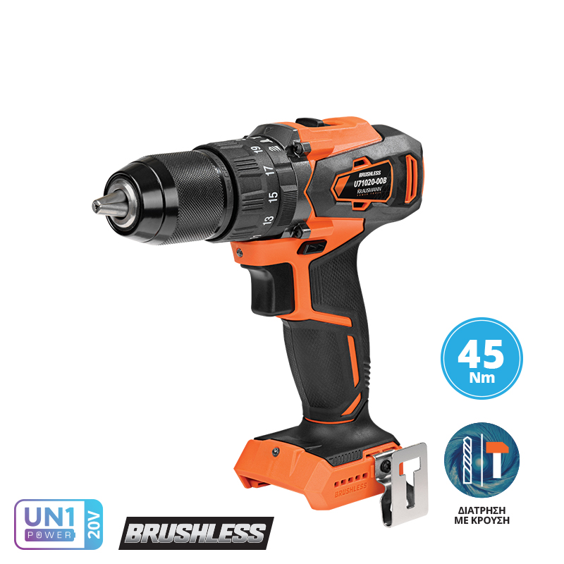 Δραπανοκατσάβιδο κρουστικό επαναφορτιζόμενο KRAUSMANN® U71020-00B 45Nm, ιδανικό για διάτρηση σε ξύλο, μέταλλο ή παρόμοια υλικά, και περιστασιακά για διάτρηση με κρούση σε τοιχοποιία ή δομικά υλικά. Το LED εργασίας διαθέτει αισθητήρα φωτός για εξοικονόμηση μπαταρίας σε συνθήκες ημέρας.