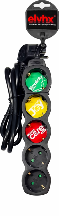 ELP10502 | ΠΟΛΥΠΡΙΖO 5Θ x16A +ΚΑΛ.1.5mt 3G 1.5mm² ΧΩΡΙΣ ΔΙΑΚ. IP20 ΜΑΥΡΟ