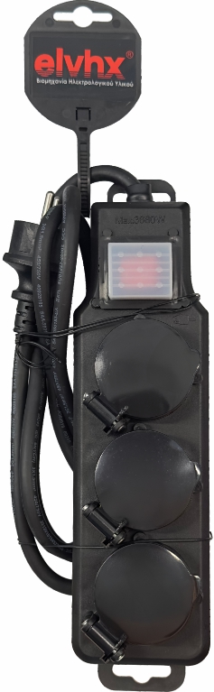 ELP12302 | ΠΟΛΥΠΡΙΖO 3Θ ΣΤΕΓΑΝΟ IP44 +ΚΑΠΑΚΙ+ΔΙΑΚ.+ΚΑΛ.1.4mt 3G1.5mm2 ΜΑΥΡΟ